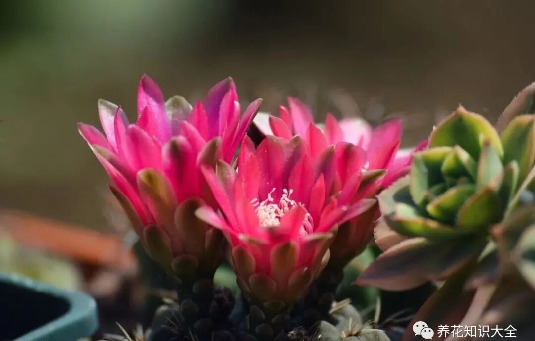 绯花玉仙人球的花朵白天绽放,晚上闭合,反反复复能开好几天。花朵颜色艳丽,观赏价值很高,还带有淡淡的清香呢。