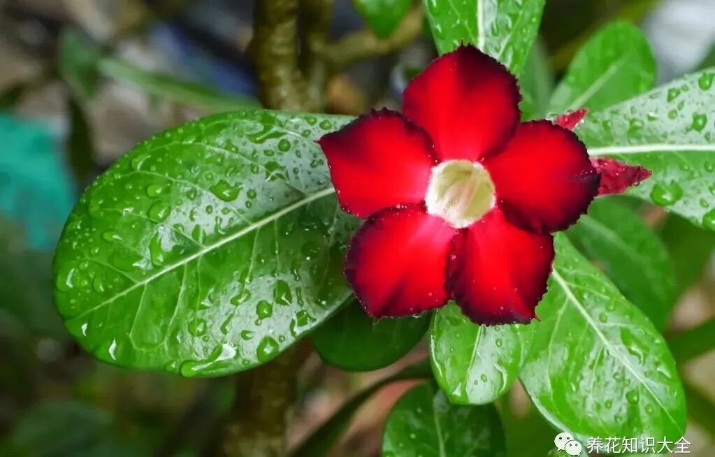 沙漠玫瑰除了耐热耐晒以外,还特别耐干旱。它粗壮的茎秆里面储存着大量养分水分,像骆驼一样耐旱,就算长时间不浇水,也不容易旱死。养护得当的沙漠玫瑰,从夏天到秋天,可以开三次花,特别漂亮。花市遇到沙漠玫瑰,别看不上!