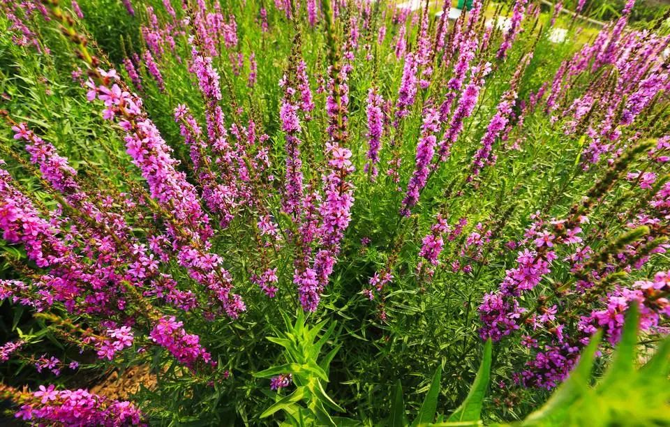 千屈菜,千屈菜科、千屈菜属多年生草本。生于河岸、湖畔、溪沟边和潮湿草地。 喜强光,耐寒性强,喜水湿,对土壤要求不严,在深厚、富含腐殖质的土壤上生长更好。