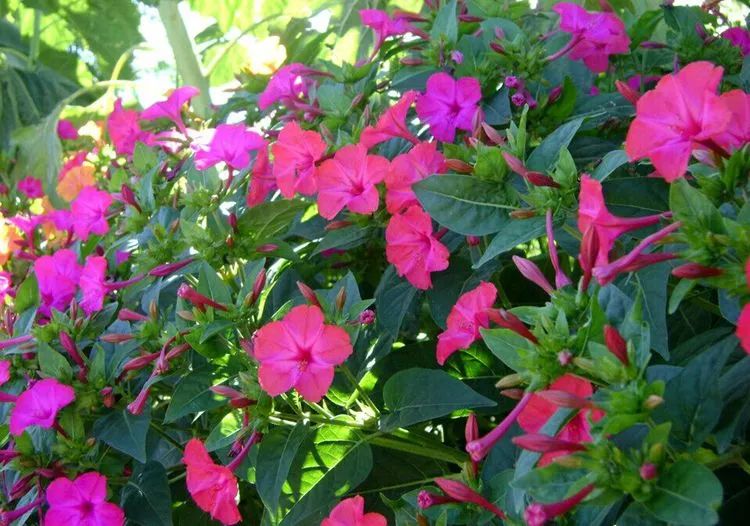 紫茉莉,草本,高可达1米。花期6-10月,果期8-11月。原产热带美洲。中国南北各地常栽培,为观赏花卉,有时逸为野生。根、叶可供药用,有清热解毒、活血调经和滋补的功效。种子白粉可去面部癍痣粉刺。
