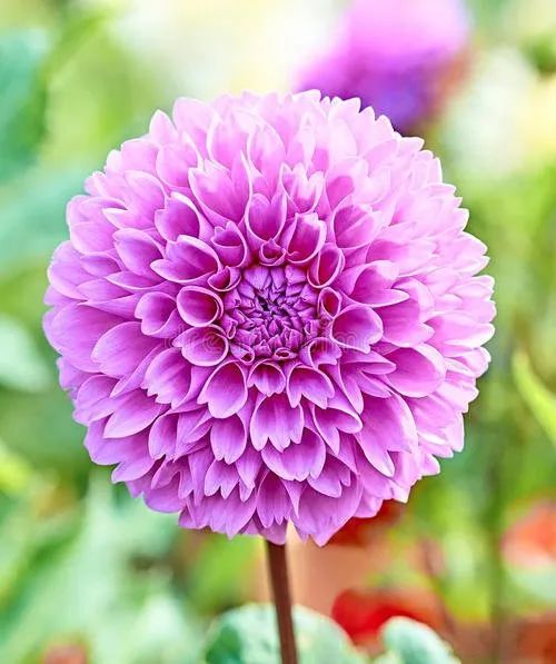 紫色绒球大丽花 'Mary's Jomanda':菊科大丽花属,原产墨西哥、危地马拉、哥伦比亚高原地带,花品种已超过3万个,是世界上花卉品种最多的物种之一。墨西哥人把它视为大方、富丽的象征,因此将它尊为国花。
