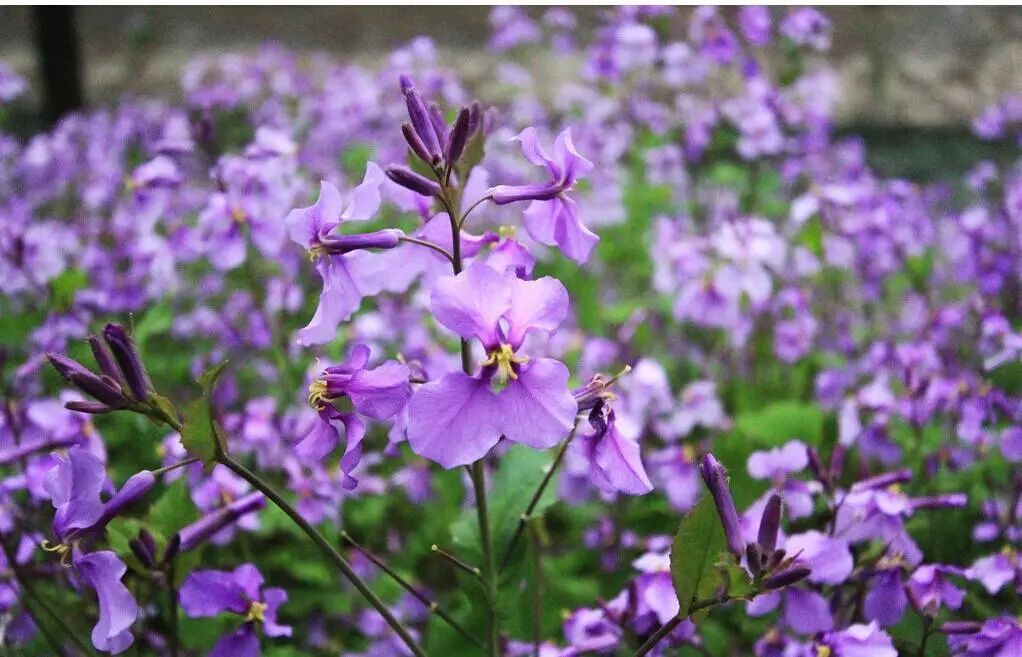 诸葛菜传说诸葛亮率军出征时曾采嫩梢为菜,故得名。另因农历二月开兰紫色花,得名二月兰。二月兰作为优良的地被植物,常野生于平原、山地、路旁、地边或杂木林林缘。在北京属于早春的花种!