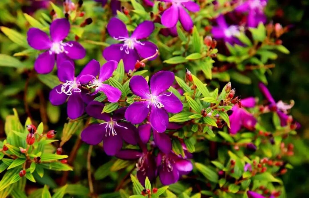 巴西野牡丹是野牡丹科常绿小灌木,株高0.5-1.5米。原产巴西低海拔山区及平地,中国广东、海南等地有引种栽培。它的植株清秀,花期长,花朵艳丽,非常适合庭园、绿地的绿化、美化。蒴果坛状球形。花多且密,单朵花的开花时间长达4-7天;周年几乎可以开花,8月始进入盛花期,一直到冬季,谢花后又陆续抽蕾开花,可至翌年4 月。