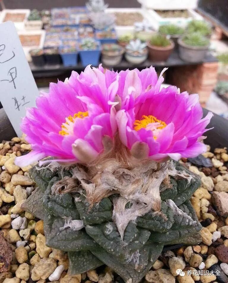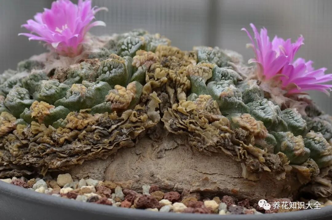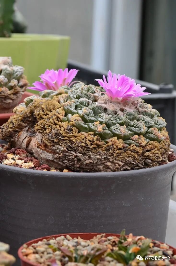 龟甲牡丹是仙人掌科、岩牡丹属的多肉植物。养护得当的龟甲牡丹,有很强的开花能力,花朵和仙人掌、仙人球的花很像。充分授粉的龟甲牡丹花朵,花谢以后就能结出种子,可以用种子繁殖出小的龟甲牡丹苗。龟甲牡丹也可以用籽球繁殖,繁殖难度属于中上等。