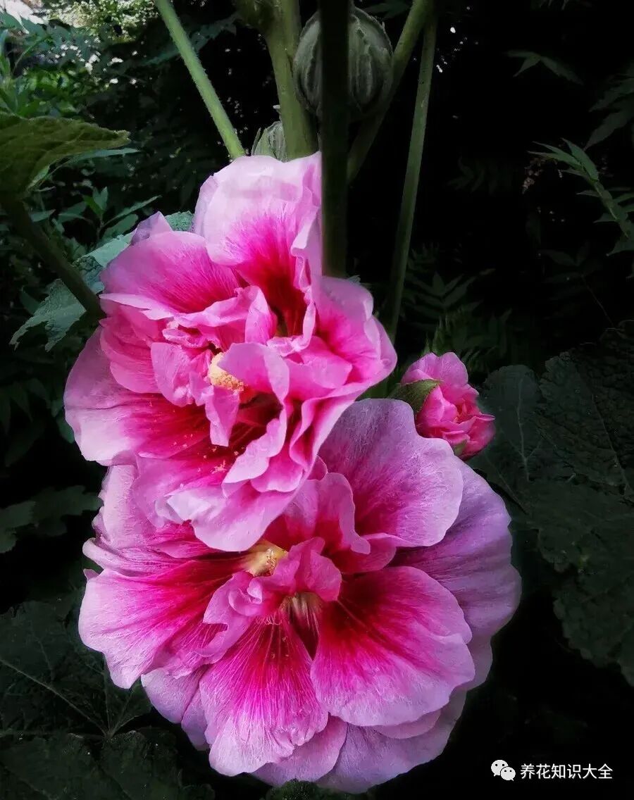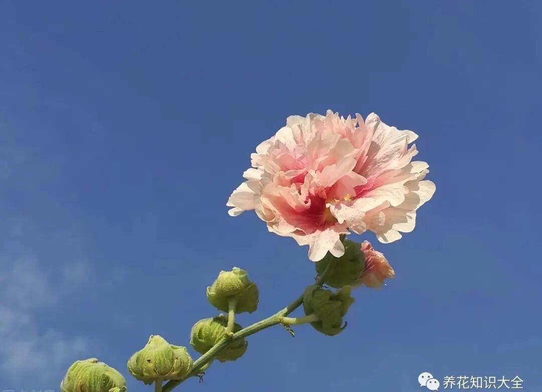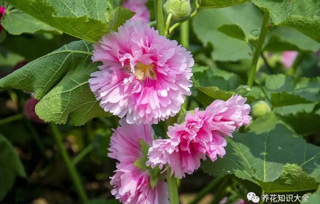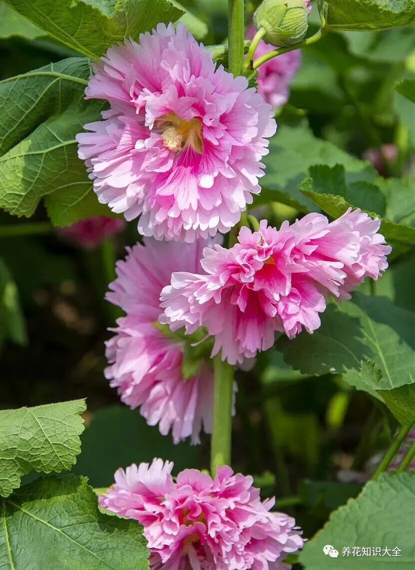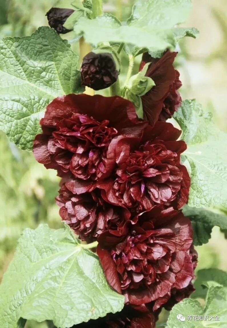 不管哪种重瓣蜀葵,都好养花量大,很少生病虫害。要知道以前在农村,蜀葵可是被人嫌弃的土花,不用刻意种,种子落到哪里就在哪里生根发芽,开出一大片来。以前我家菜地里长出好几棵蜀葵,过一段时间就把枝叶割了喂羊,一年割好几茬,也不会死掉。