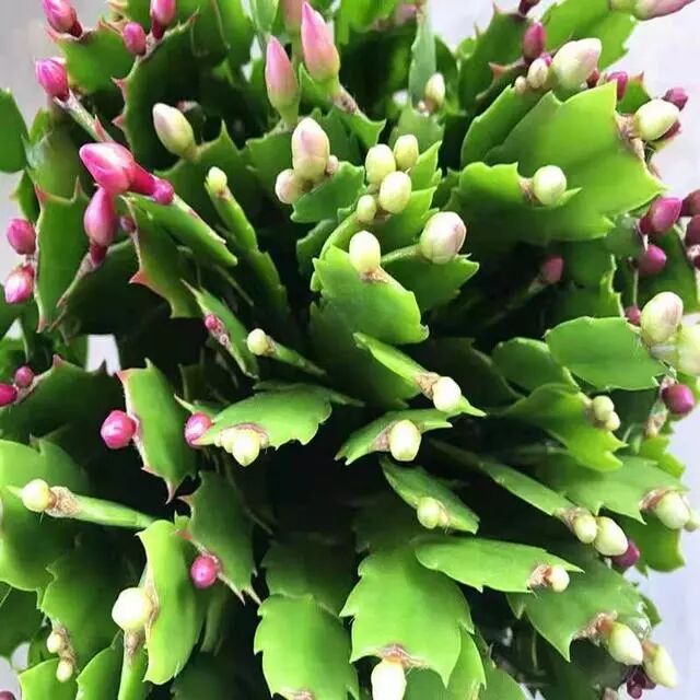 大家记住:春天和秋天是蟹爪兰养叶子最好的两个时间段,叶子长得好了,到了冬天开花的时候,一个叶子上才会冒出多个花苞,才会花开满盆!
