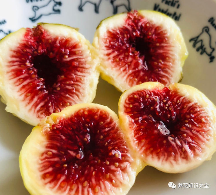 如果你要问这么诱人的无花果,是在哪个超市买的?那花花说什么都要臭屁一下,因为这些果子全是花花自己种出来嗒。花花去年就在家里种过一棵无花果树,果子还是非常能结的,而且只要是养第二年,果子的数量就非常多了,自给自足真的一点都不夸张。切开一个果实,里面的丝状物其实都是花蕊,所以我们吃的无花果,是果也是花,而且它还有止咳润肺,助消化的作用。