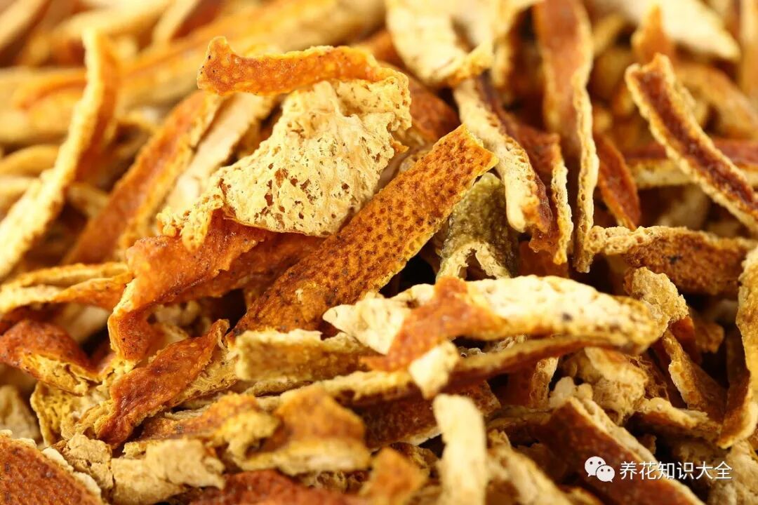 陈皮其实就是橘子皮,大家可以自己在家晒一点橘子皮,花花平时还是比较喜欢喝陈皮茶的,陈皮能够生津止渴、还有化痰除湿的效果,如果要是自己的肠胃不适,也可以喝一点陈皮茶改善改善。