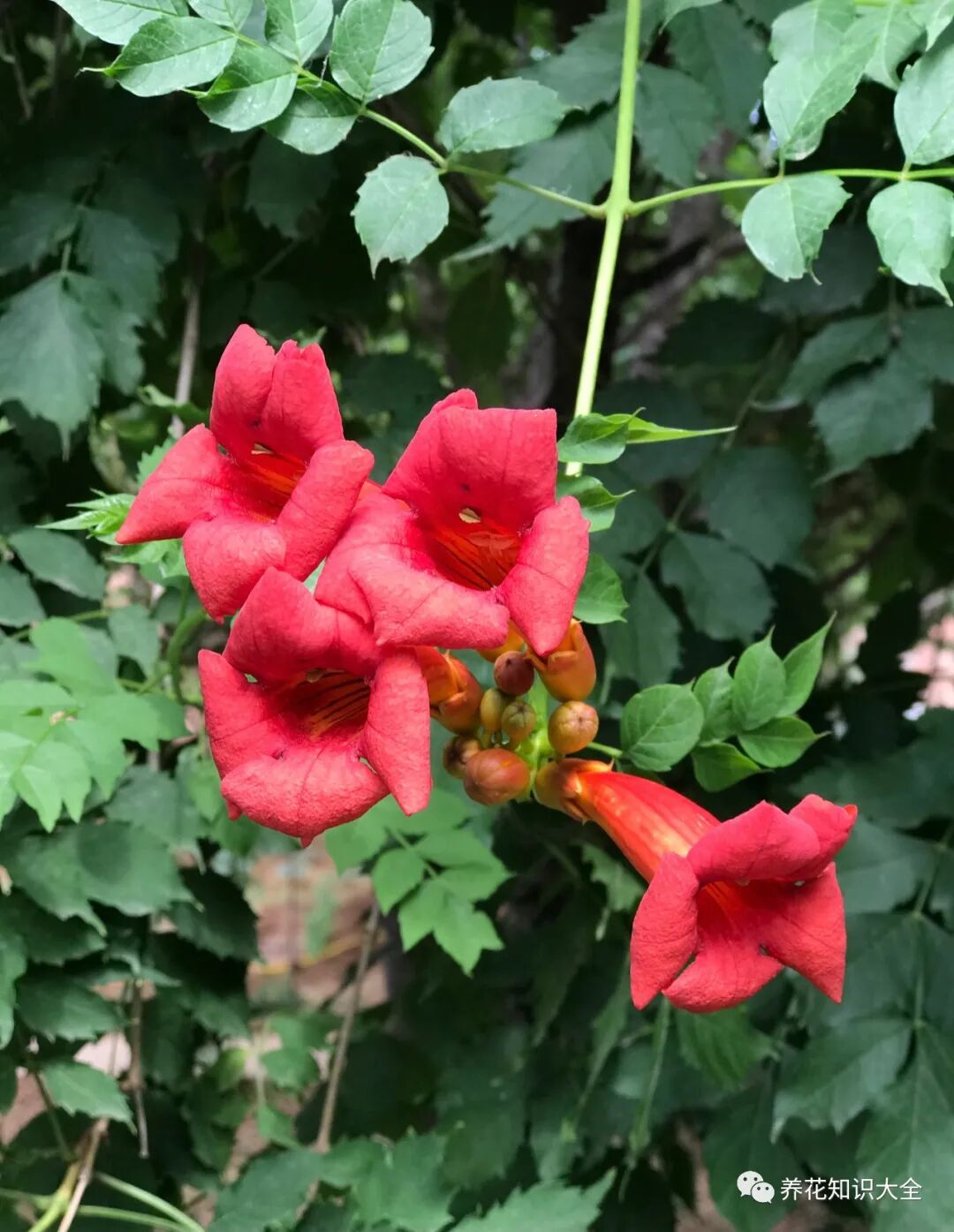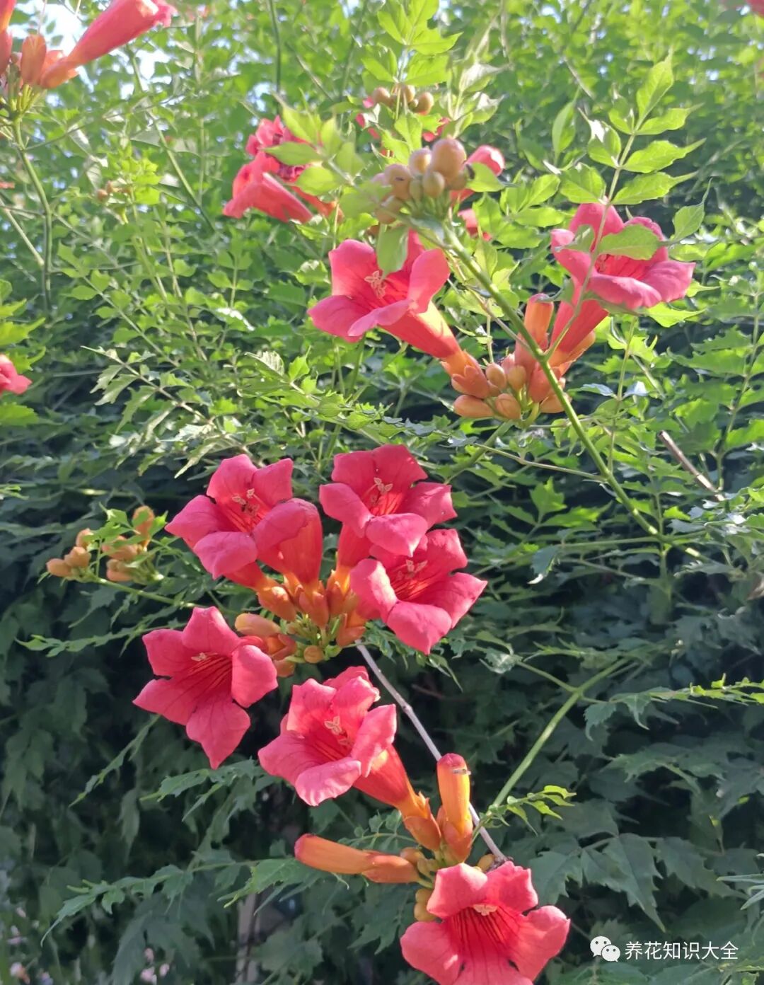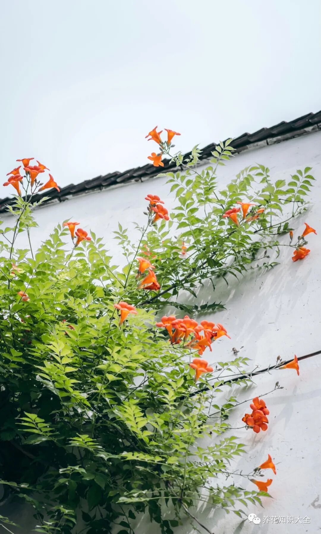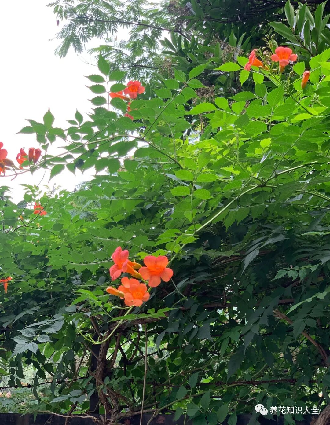 最重要的一点,凌霄花的根系特别发达,它可以在短时间内霸占所有能霸占的地方。只要有凌霄花根系到达的地方,时机成熟就能长出新苗。所以,一开始你种下的是一棵凌霄花,过上一段时间,很可能就长出无数棵来。