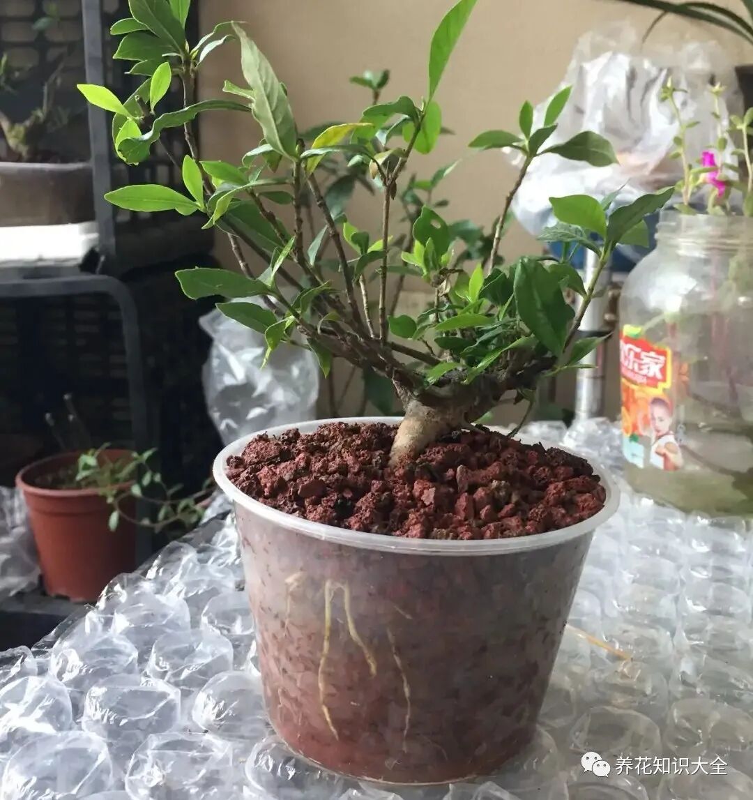 不大不小的一次性饭盒用来再种一棵不大不小的栀子花老桩是不是特别合适。而且这种透明的盒子,可以很清晰地看到根系的生长情况,以及根系的健康状态。