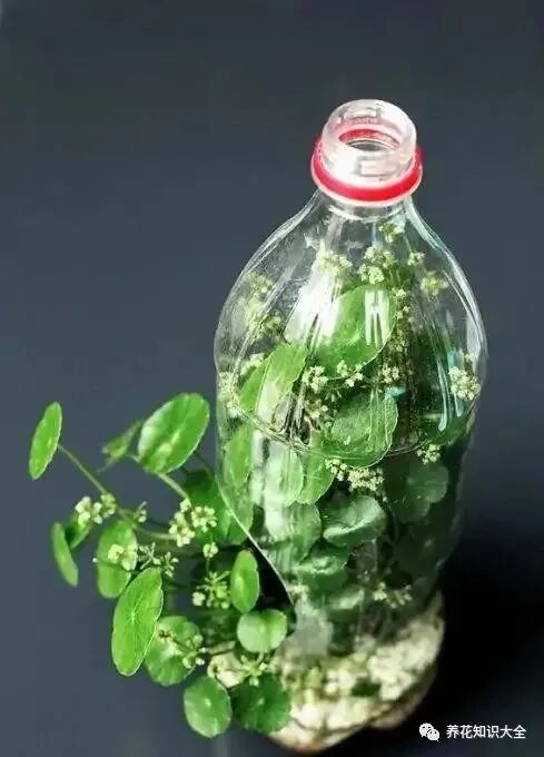 铜钱草生长十分迅速,叶子长得很茂盛,可以在瓶子的侧面开一个孔,让它的枝叶长出来。形成“满瓶春意关不住,一枝绿叶出瓶来”的韵味哦。