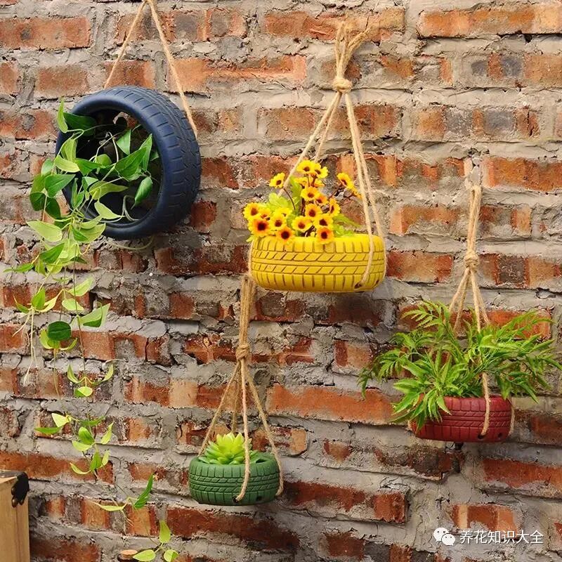 大的轮胎重量很重,要挂起来需要花费一番的心思。但是小轮胎的话质量很轻,只要钉个钉子就可以挂上去养花。如果将轮胎立起来挂着的话,是可以装上一定的土壤养花的,但如果横着挂的话,底部需要用木板给它钉起来,不然的话土都会漏下去的。