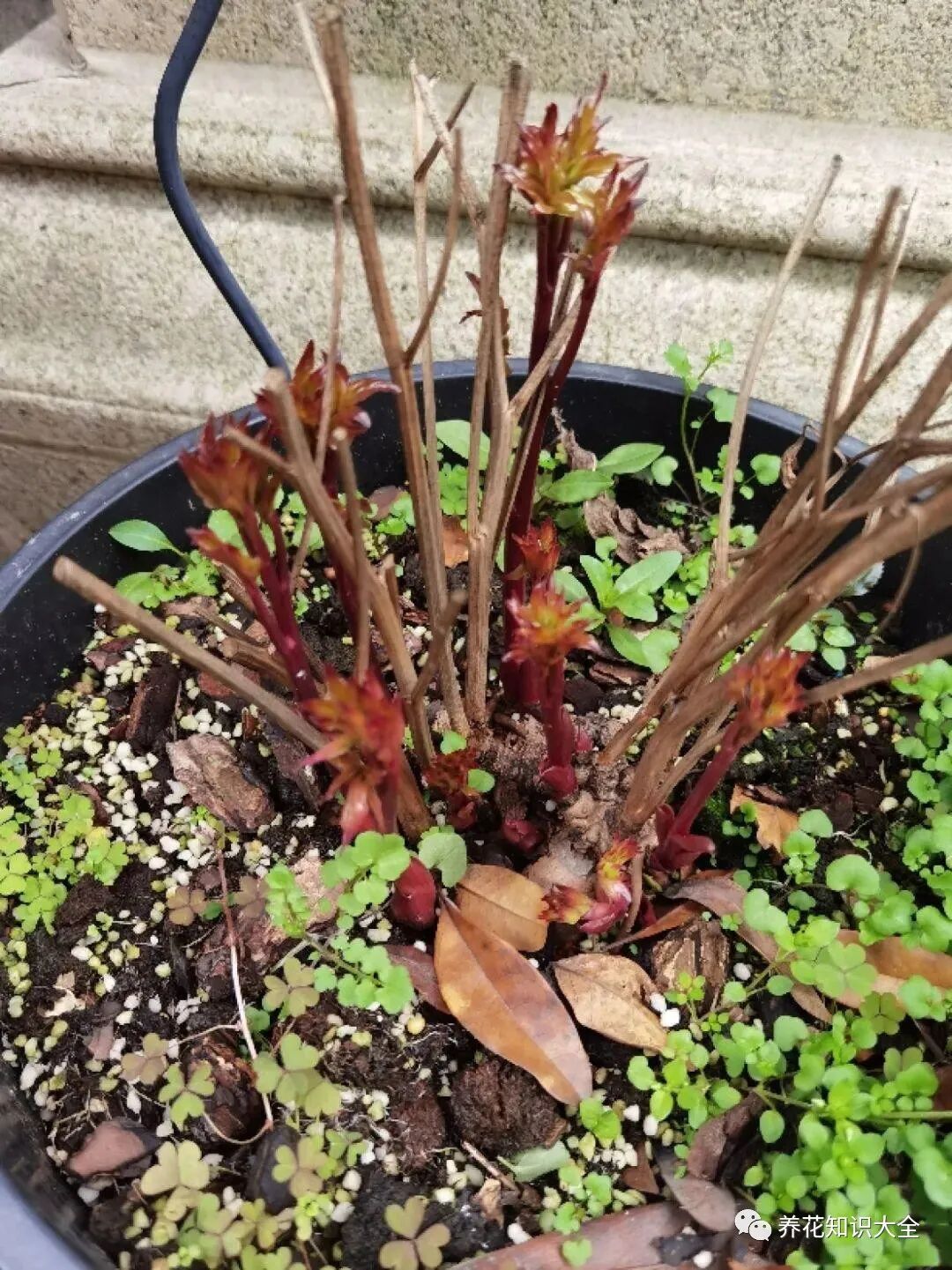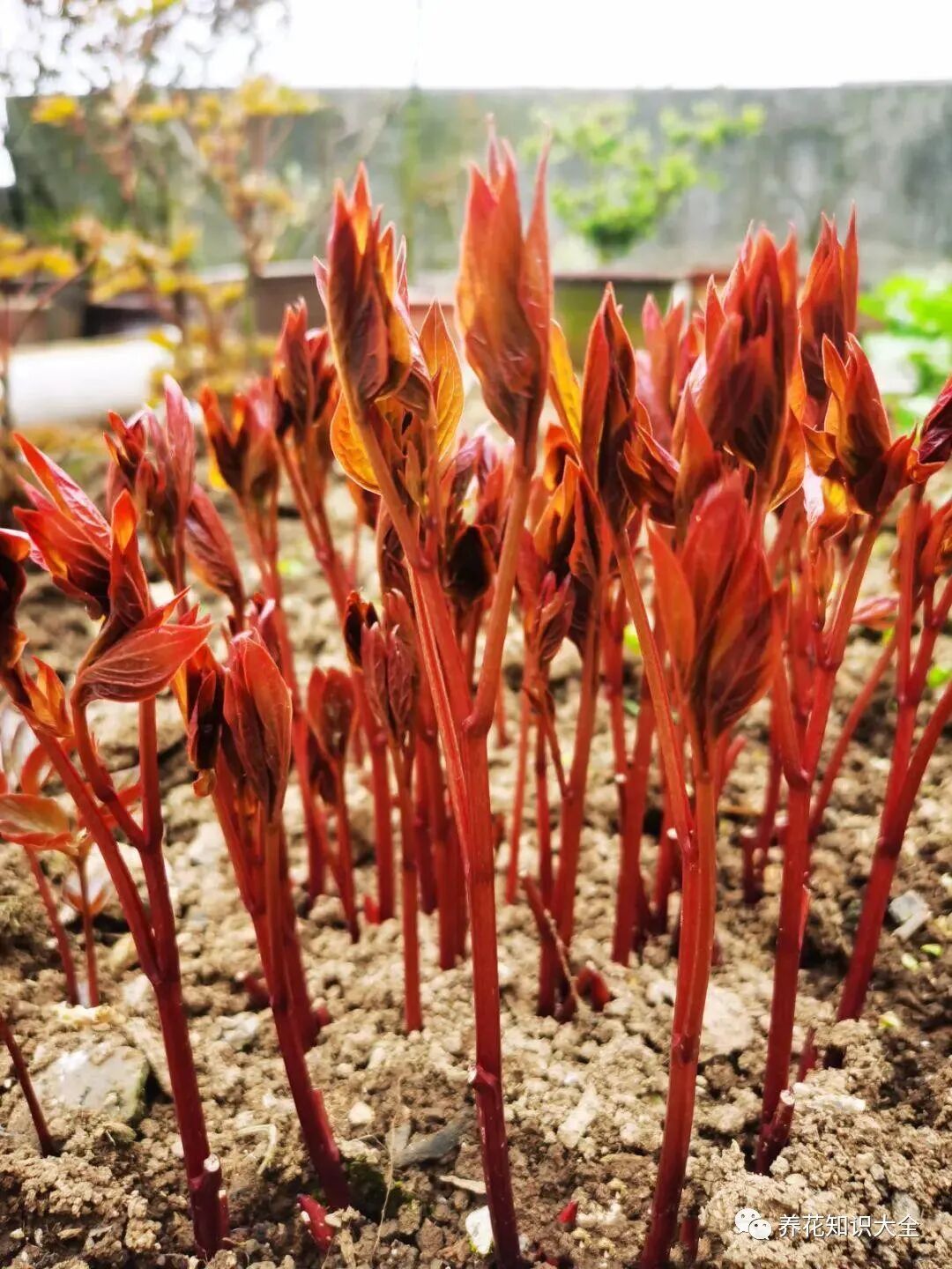 芍药整个秋冬季节,都在土壤里蓄势待发,特别是冬天的严寒天气,可以让它冻一冻,这样来年一暖和,浇一次透水,块根上的芽点就迫不及待从土里冒出来啦!