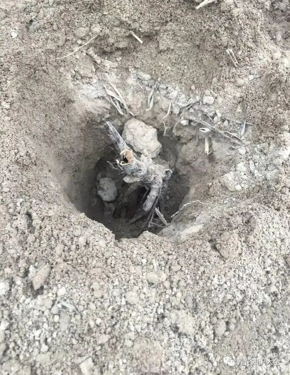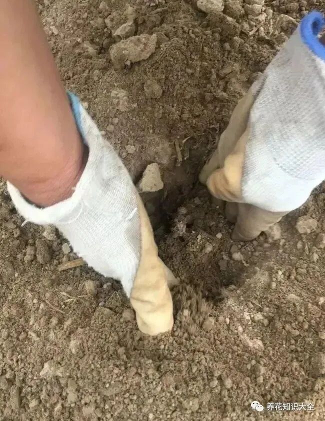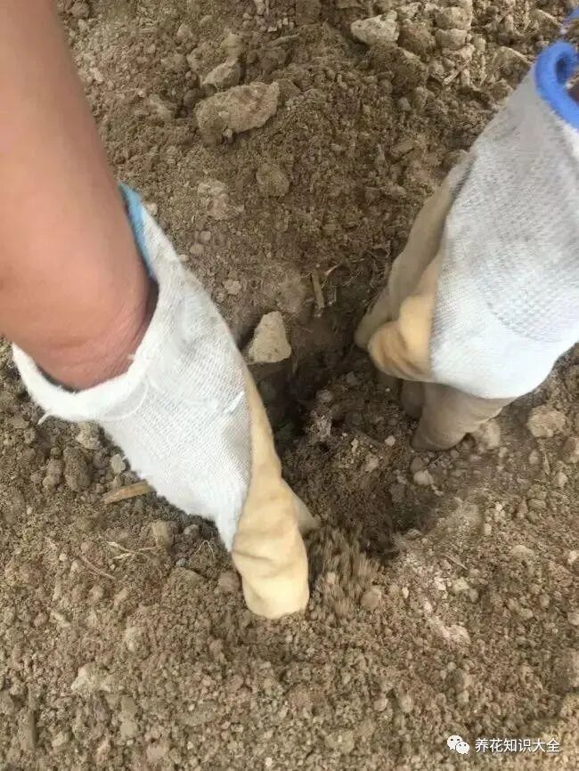 种植的时候,根据收到的芍药块根大小,选择挖一个合适的坑,一般挖坑的时候,要求小苗和坑边缘留着2cm左右的空隙,4-6芽的,一般挖40cm左右深度,15-18cm的宽度即可。