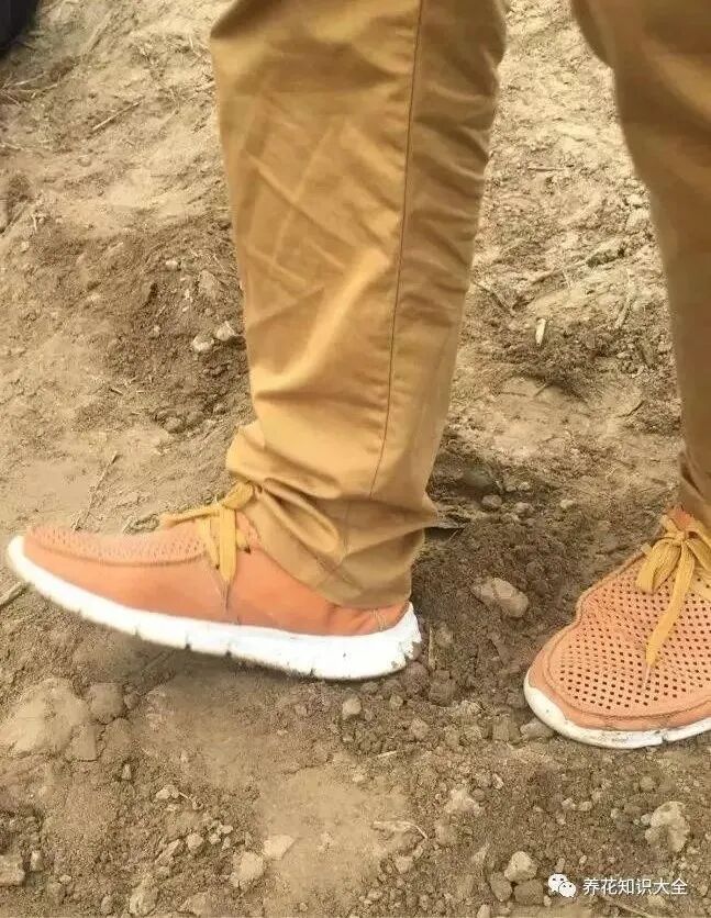 最后,再用脚踩一踩土,让土堆完全压实,这样芍药就种好啦!
