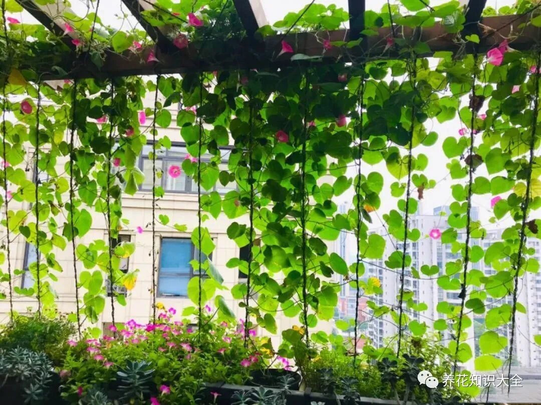 牵牛花在路边非常常见,它的花期集中在6-10月夏秋季节,不怕热不怕晒长势快。一般用种子播种,种在窗边栏杆旁,会爬成一大片,当窗帘遮阴。