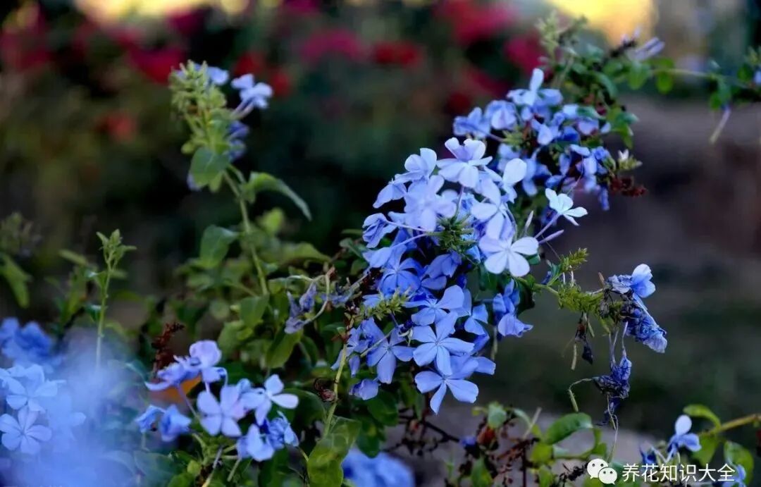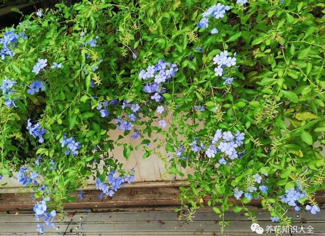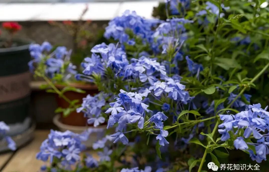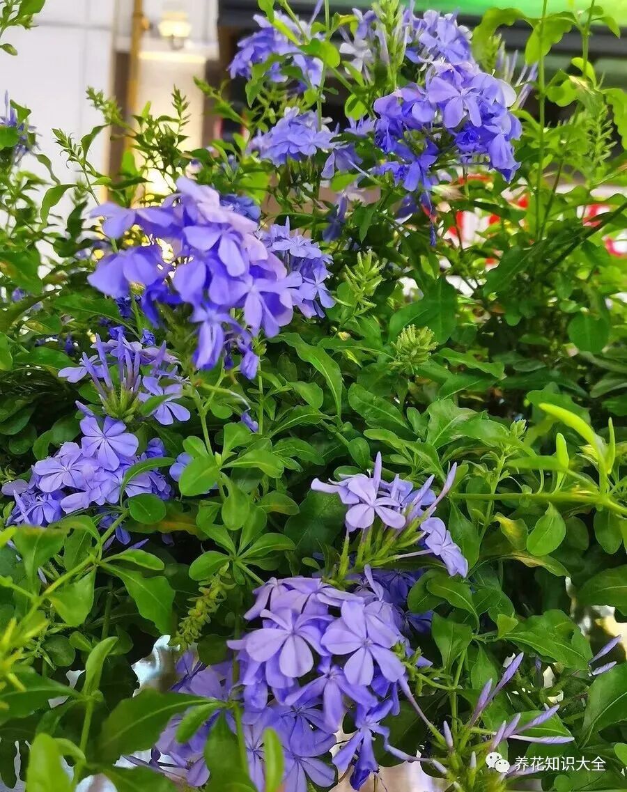在这么强大的长势面前,如果做不好修剪,蓝雪花真的会张牙舞爪,看起来凌乱不堪,就算能大量、长时间开花,也毫无美感可言。养蓝雪花一定要勤修剪,及时把残花和过于细弱的枝条剪掉,只留下强壮的分支就行。修剪得当,蓝雪花整株看起来比较好看以外,每个花穗也会比较大,容易开成一个蓝色的大花球,看起来就美丽很多。