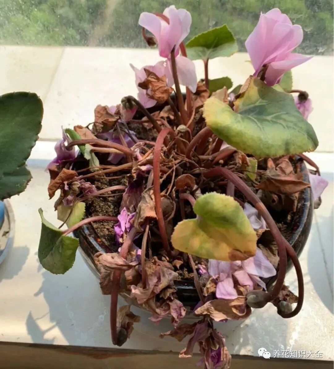 仙客来本身就喜欢冷凉的环境,夏天天气热高,它会慢慢黄叶、枯萎,进入休眠,最后没剩几片叶子,这个时候要给它严格控制浇水,否则会烂球。