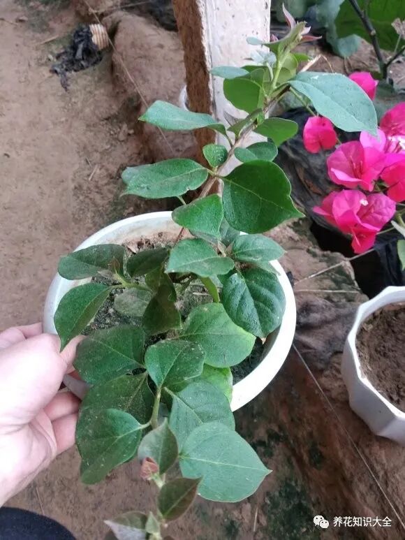 三角梅水插长出生根组织以后,马上要移到疏松透气性好的植料中,而不要长时间水插让生根组织长得太大。虽然三角梅水插也能生根成活,但不如先水插再土插的好。在用植料扦插三角梅已经长了生根组织的插穗时,一定要小心一点,别把刚刚长出的生根组织损伤了,否则就没法长出根系。可以在植料中挖一个小坑,把插穗埋进去,而不要用力把插穗按压进植料中。