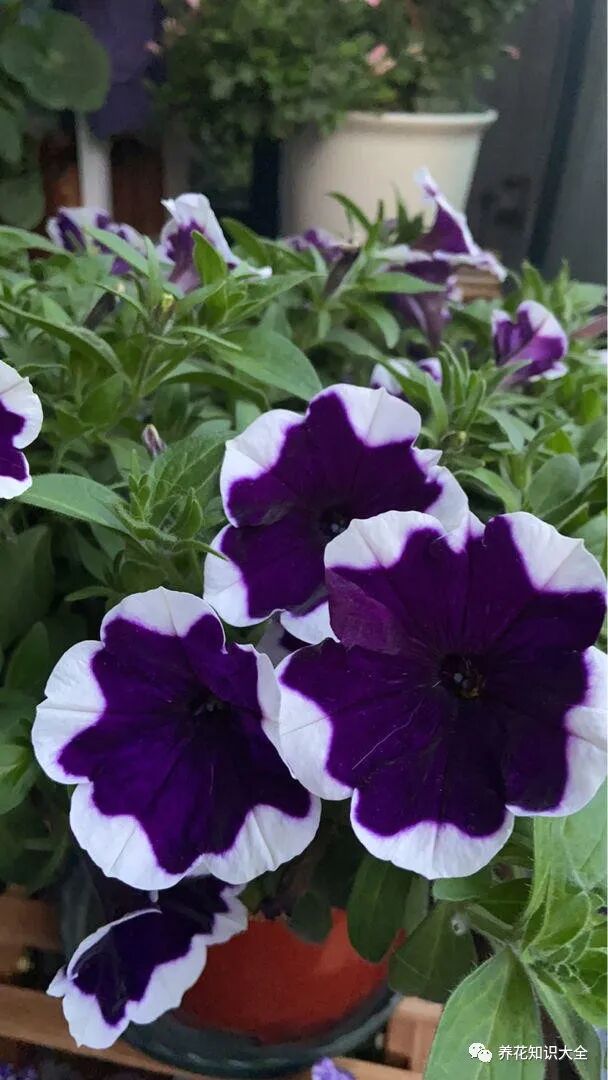 矮牵牛花的长势是四面八方地长,我们在家种矮牵牛,可以把不同颜色的花种在一个盆里,到时花盆里开出来的花,也是五颜六色的,像是一个五颜六色的大花球。