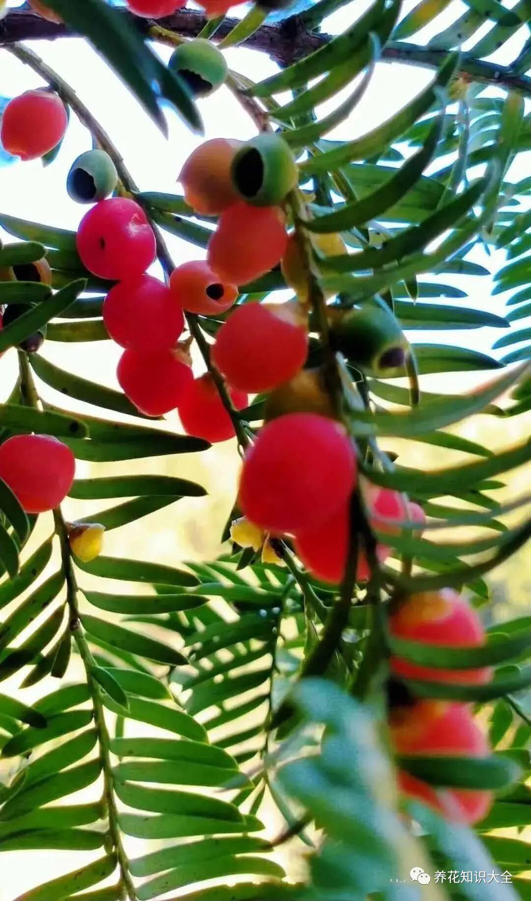 红豆杉的果子,成熟后红彤彤的非常漂亮,有些人喜欢拿来吃或者泡酒。但医生建议不要直接食用,因为它含有紫杉醇,是一种药,是药三分毒,随便吃容易中毒,过量的话,甚至会死亡。