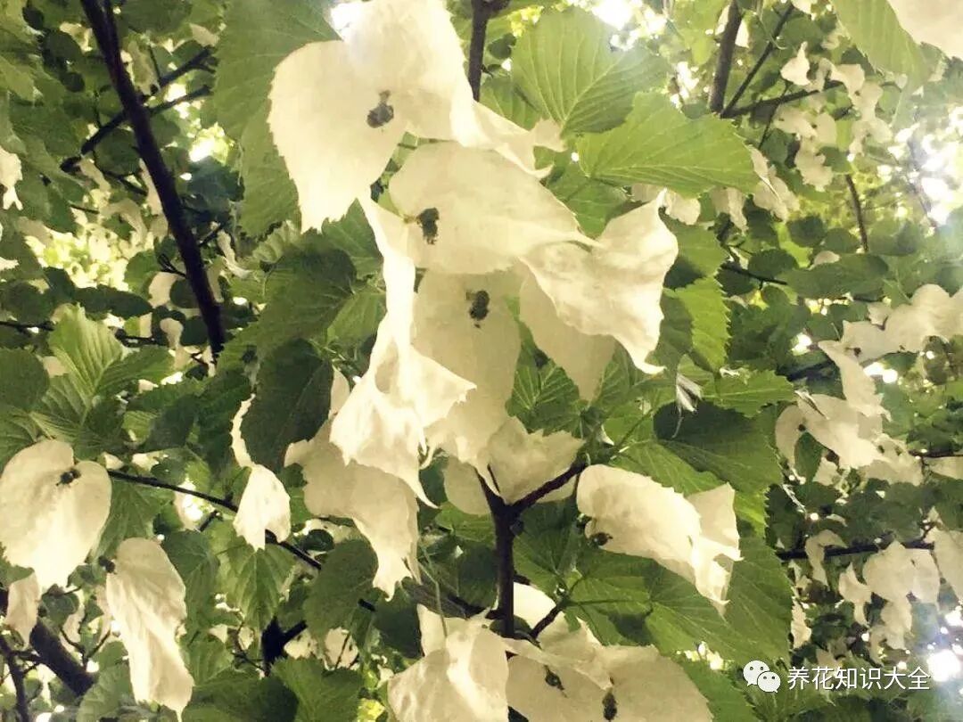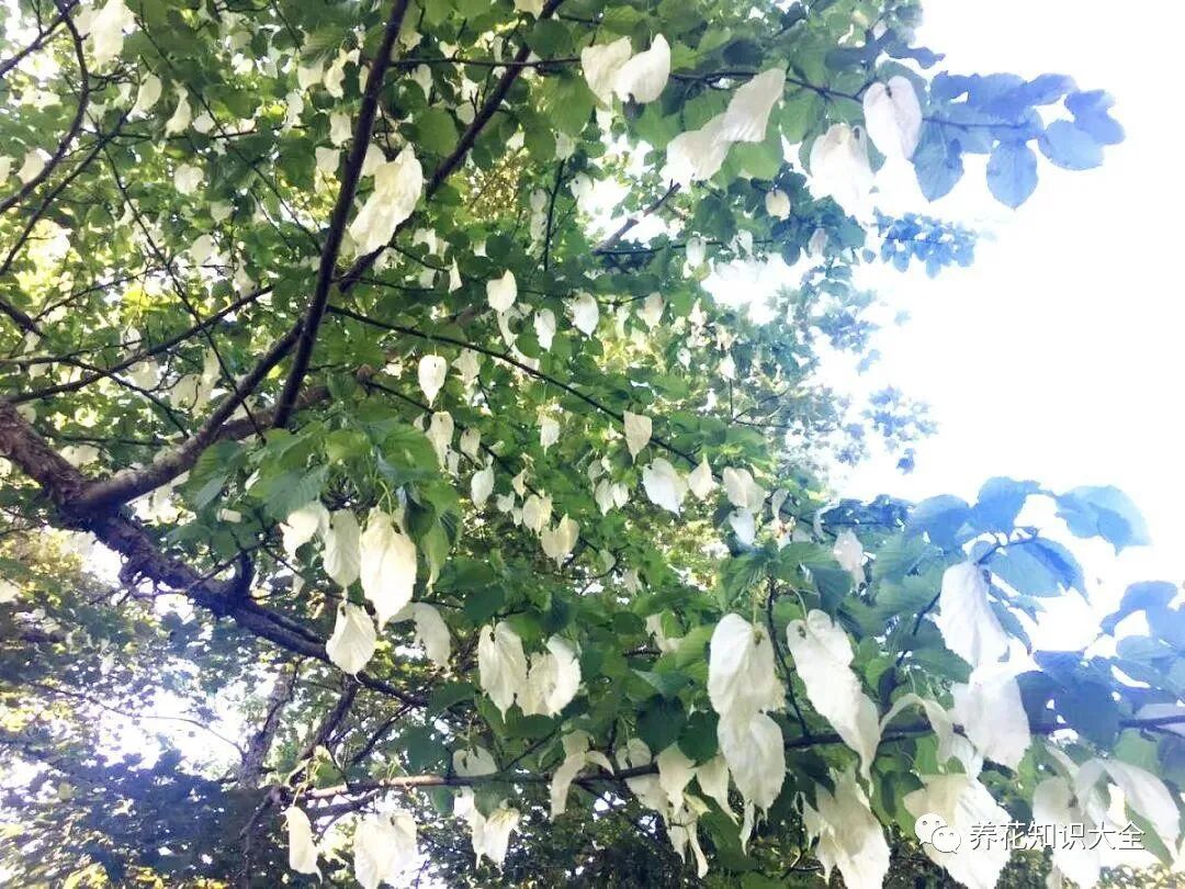 珙桐4月开花,花朵奇特,洁白无瑕的花瓣只有2片,而且有一片较长有一片较短,微风吹过,好似翩翩飞舞的白鸽,因为又被称为“中国的鸽子树”。