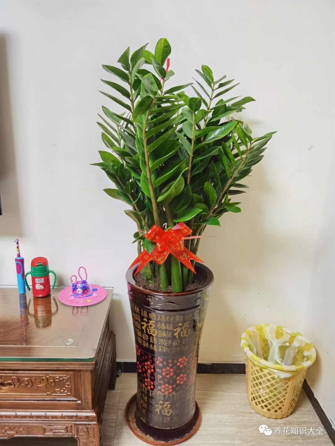 金钱树,又叫做雪铁芋。因为它的叶片的形状和排序像极了串起来的钱币,因此被叫做金钱树,金钱树的形状和名字寓意着财源广进,因此很受欢迎。金钱树喜欢在暖热、略干半阴的环境下生长,因此适合室内的种植环境,同时金钱树还有净化空气的作用,在室内种植对家人身体也很有好处。