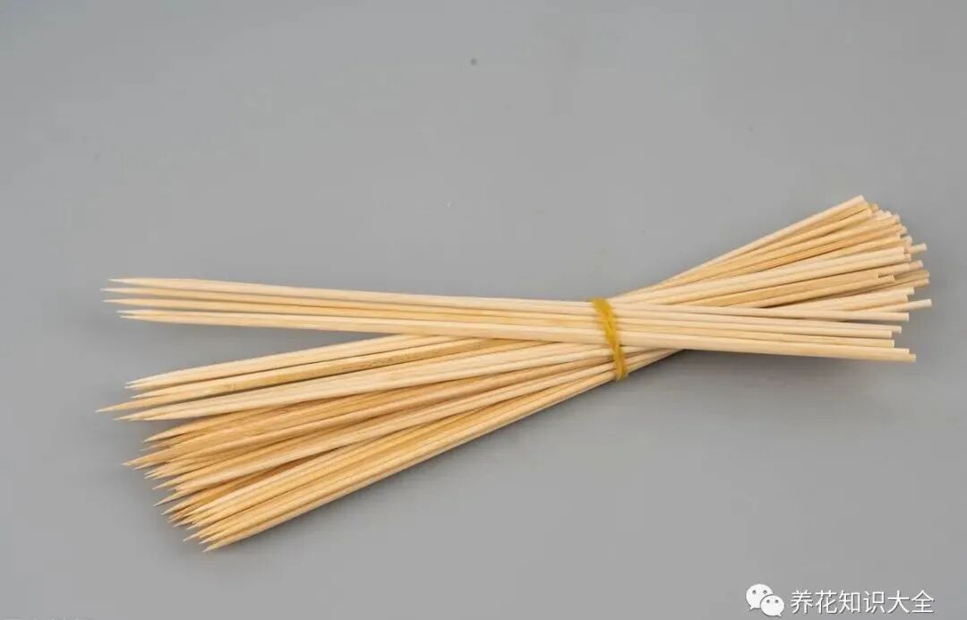 不管是自己家做烧烤还是在外面买了现成的烧烤,有比较好的竹签都会留下来,用来养花。我家院子里有个袋子,里面装了一大把竹签,用的时候随时可以拿,不用到处找。