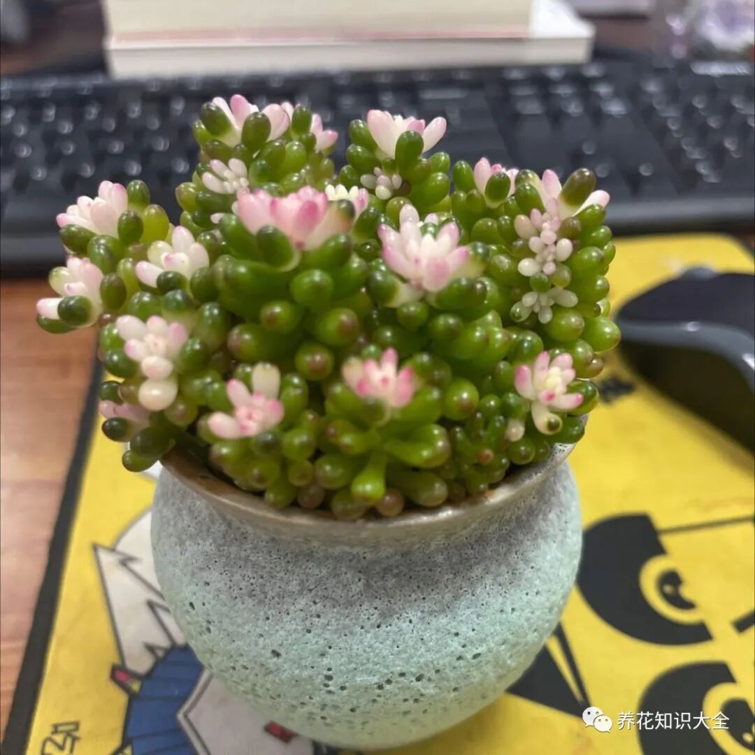 姬胧月又被称为宝石花,像前面介绍的多肉植物一样,它在受到足够的阳光照射之后叶子会变得红彤彤的,喜欢阳光,比较耐干旱,养殖起来也比较简单。