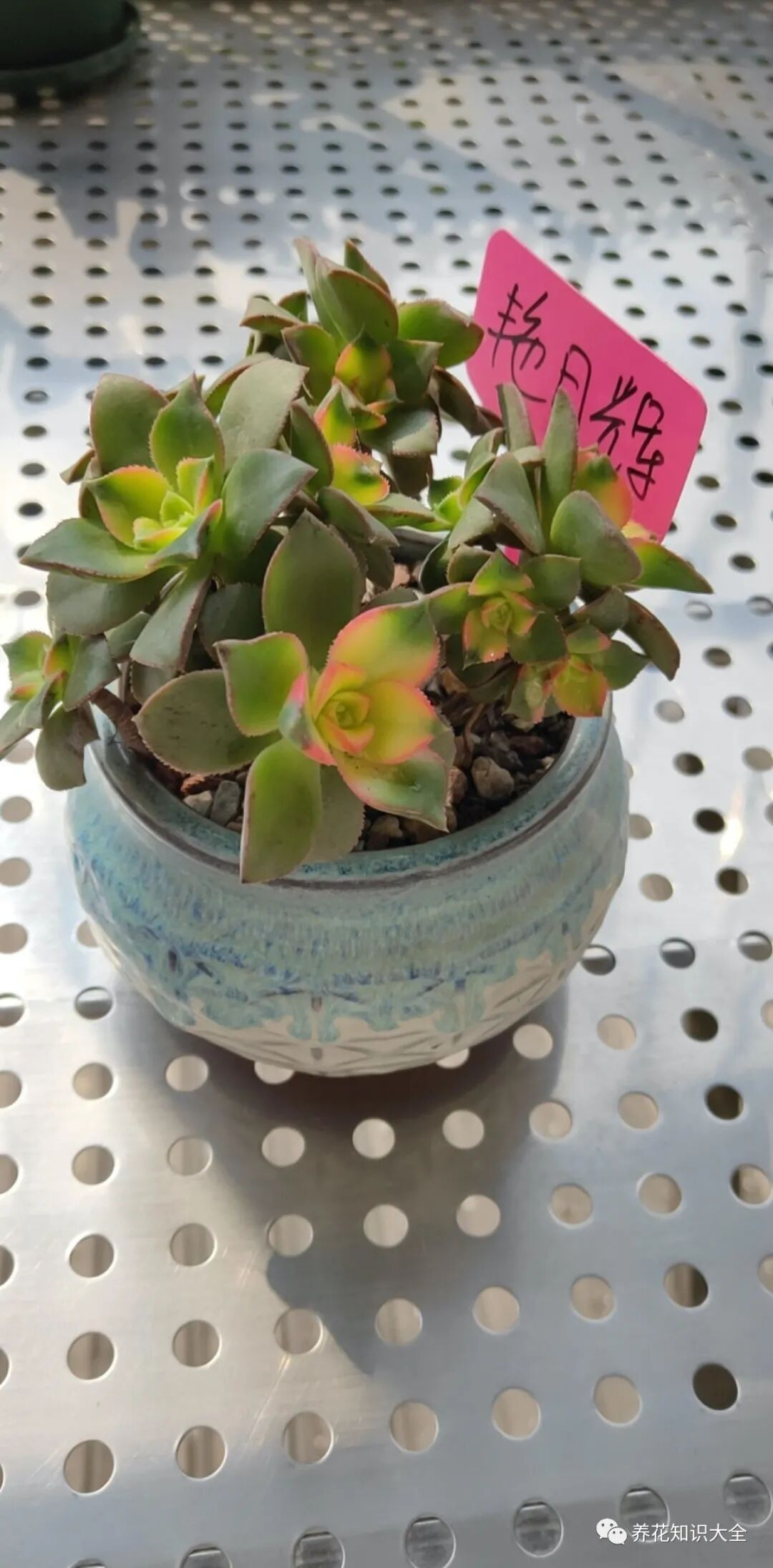 可以和上面介绍的多肉植物一起养殖,这样五颜六色、形态各异的多肉植物摆在一起,更是赏心悦目。