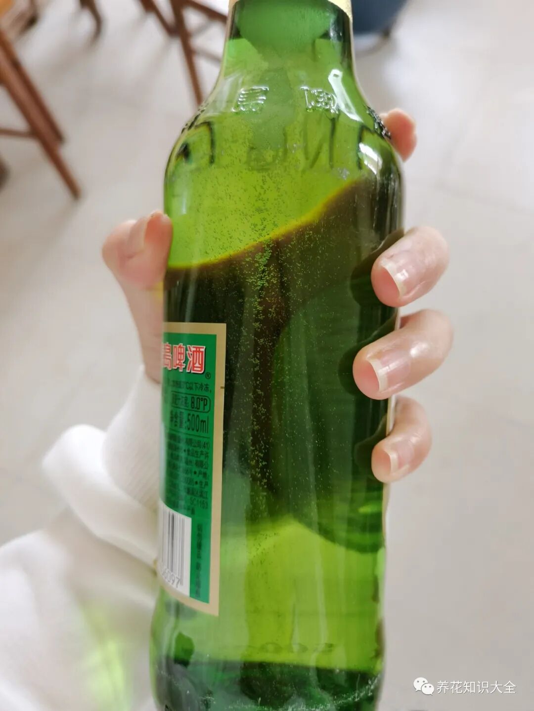 有些植物最具有观赏性的就是叶子了,但是很多人养的花叶子就是看起来没光泽。这时候咱们可以用点啤酒水,将啤酒敞开口放置一两天,尽可能的将里面的酒精挥发掉,然后把啤酒直接喷在叶子上面均匀擦干净就行。用过啤酒水之后的花卉,叶子都是非常油亮有光泽的。