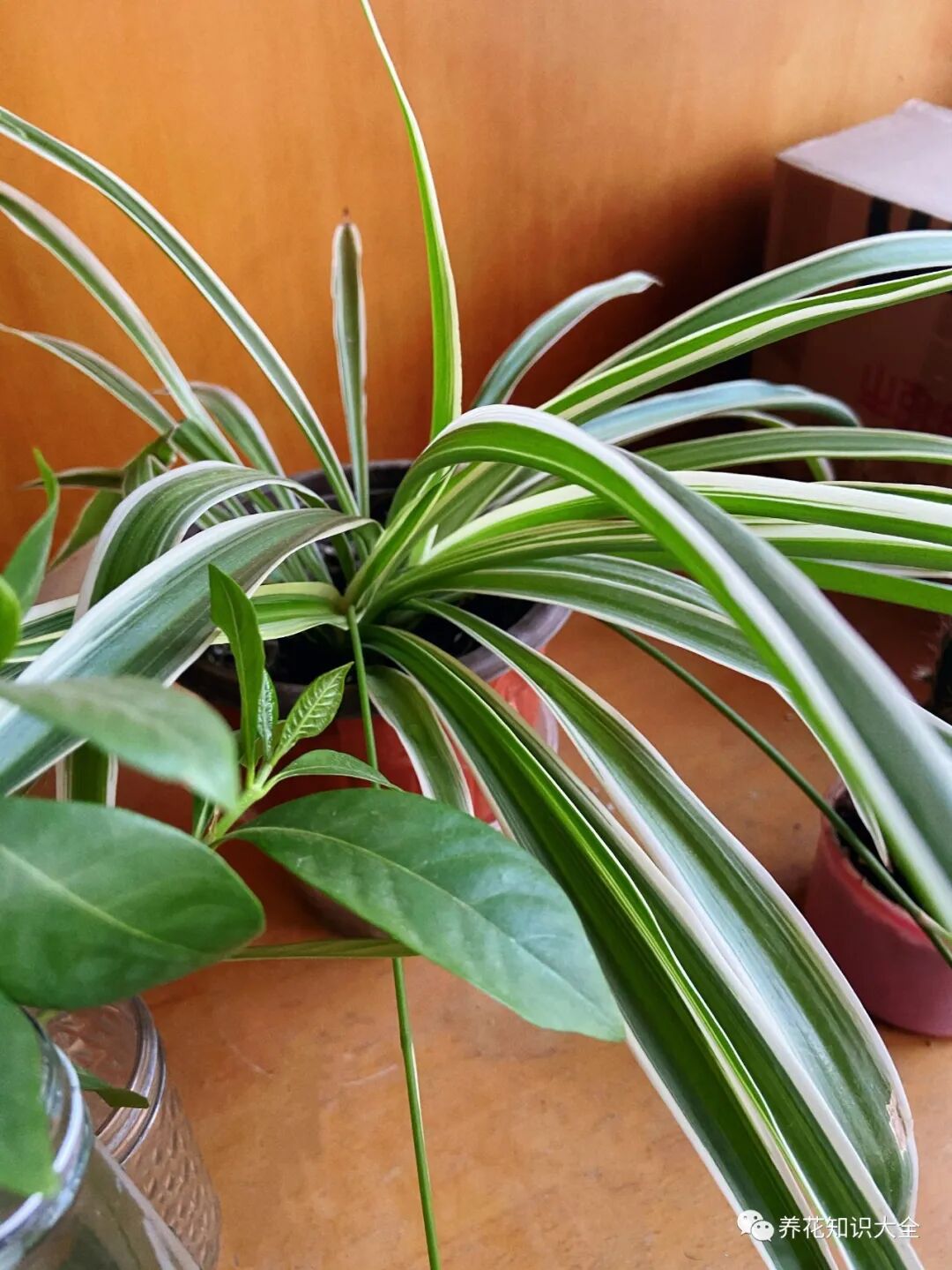 吊兰的叶子比较茂盛,在家里面养一盆净化空气效果特别好,而且吊兰很容易爆盆,掐下一个“小吊兰”,放进水里或者是种到土壤里面都能够成活呢~