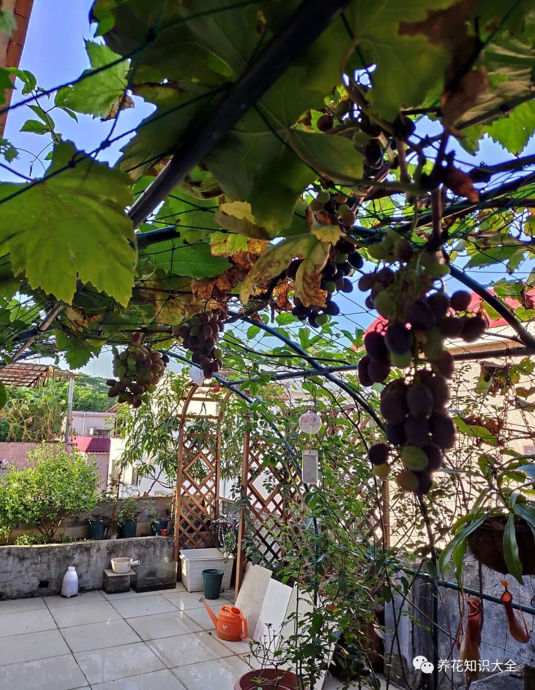 其实葡萄的种植还有很多讲究,花花今天主要为大家介绍了棚架式葡萄树的养殖方法,它非常美观、吸引人,在夏天纳凉效果也极佳,俨然是一个天然的遮阴棚,打理起来也不费心,果实长大后挂满支架,一抬头天上都是满满的葡萄。