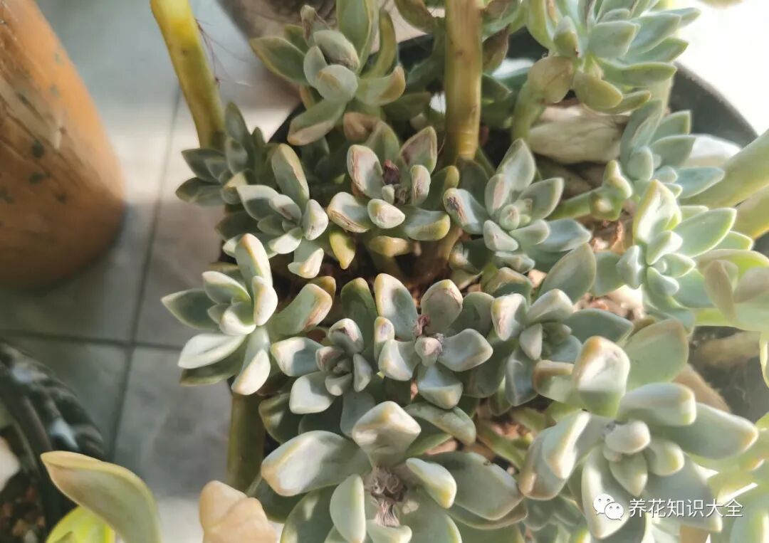 多肉植物在状态不佳的时候比较容易化水、生黑腐病,防止生病比治疗更重要,所以要时不时的扒开茎叶看看有没有底部发黑的情况,或者有叶片化水的情况都要及时发现,越早摘除越好,否则传染给其他茎叶,局面就不好收拾了,严重的话整株多肉都会面临死亡。