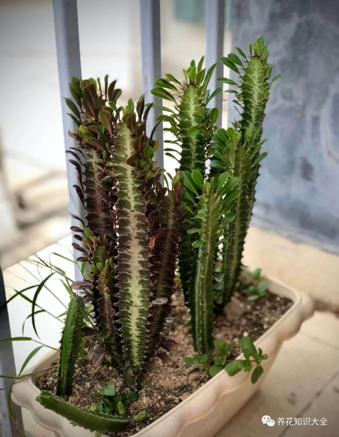 许多人认为龙骨是仙人掌科植物,毕竟乍一看看上去有许多相似的特征,但其实,龙骨是属于大戟科、的多肉植物。它的整株形体较为高大,且侧芽的分生能力很强,许多花友喜欢在家里养上一盆,绿化房间,点缀环境。