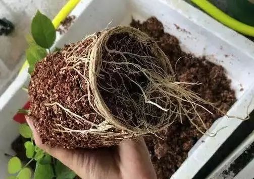 这是假期的时候才扦插的,现在温度适宜,基本上一个月左右就能生根了,再来看一下这颗是我才5月份时候用这个方法插的,根系已经非常饱满了,想要尝试的朋友去花店买花时一定要选择没有除刺的,否则,是不能成功的。