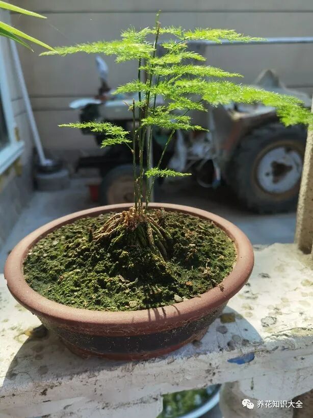 文竹,蛮有意境的。有些年头了。后面是老古董拖拉机,有人出六百块买它,爸不舍得卖。