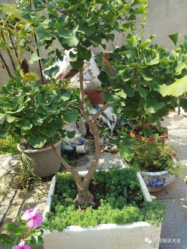 银杏树。这是隔壁二婶子给的几粒新鲜白果,说炖肉时放里面去腥,老爸随手扔花盆里几粒,结果就发芽了,最后只保留这一棵,五六年的样子了。