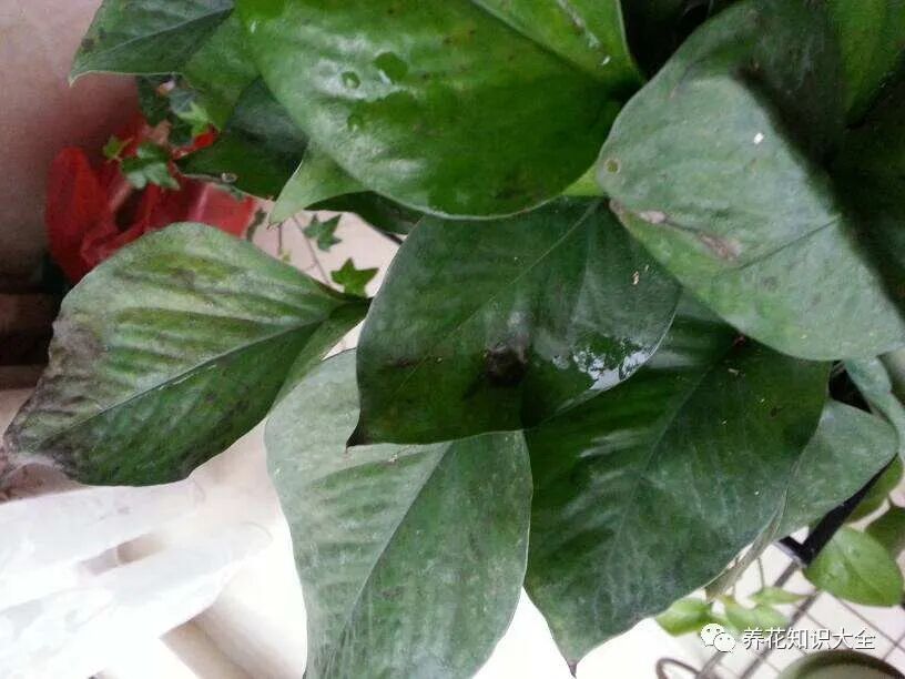 养花浇水可是一个技术活,如果你浇太多的话,那么整个植株就会出现腐烂的状况,一般来说是从根系开始烂。之后吸收养分和其它的生长方面就会出现问题,从而造成植物营养不良,因此会出现一些斑点。