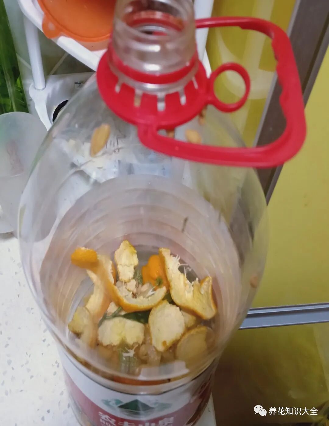 发酵后放在阳台上1~2个月后就能使用了,使用前看上层有澄清的液体,倒出来稀释后浇花就可以了。果皮肥水是弱酸性的,能改善土质,缓解土壤板结情况,调节土壤的酸性,对栀子花、茉莉花、米兰花、杜鹃花、茶花等喜酸性的花都有极大好处。