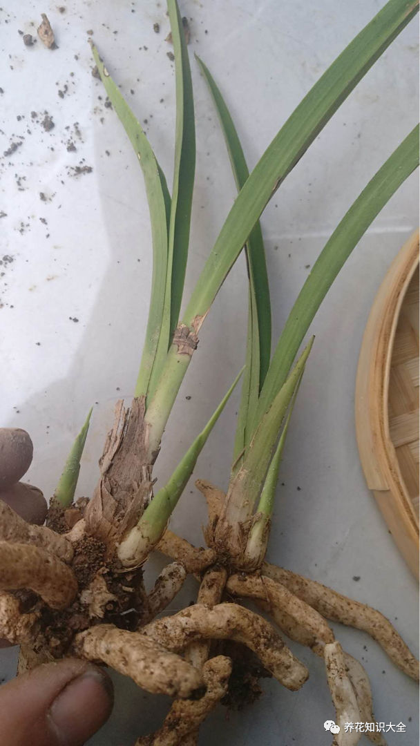 分株后,裤脚也要剪掉,那里很容易藏着一些污垢,对兰花的生长没啥好处。兰花的根系一定要用流动的清水清洗,这样减少病菌滋生。