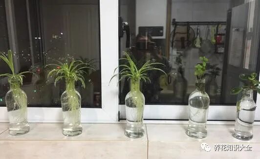 水培吊兰最好养活,家里的吊兰抽穗时,剪下几只,找一些干净的玻璃瓶放进去养,几天就能生根。吊兰对光照要求不高,也不用经常施肥,偶尔给它换一次水就可以了,非常方便,而且不占地方。