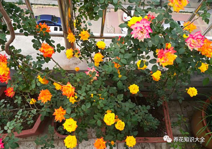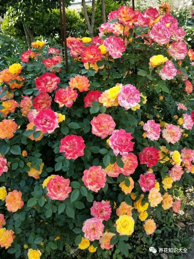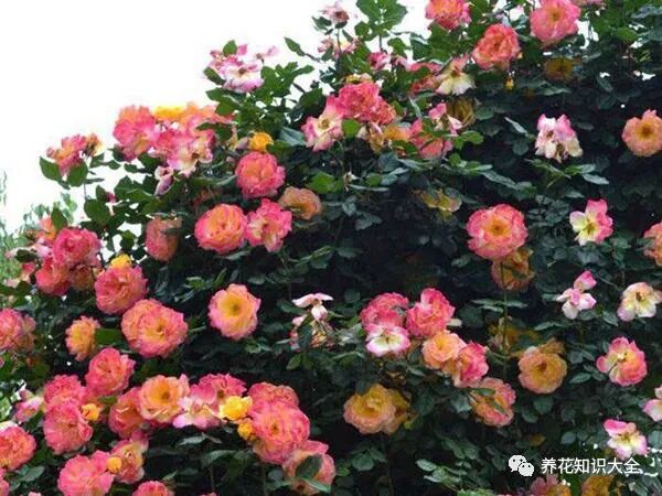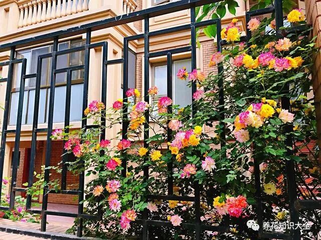今天的主角就是——“藤彩虹”,它是一款藤本月季花,株型强壮,分枝多,半直立生长,具有藤性,既可当藤本花卉养,也可做灌木,八十年代就在国外流行起来了,栽培于花坛、园林、店面门口等,装饰效果都很好,我国近几年开始逐渐火了起来。