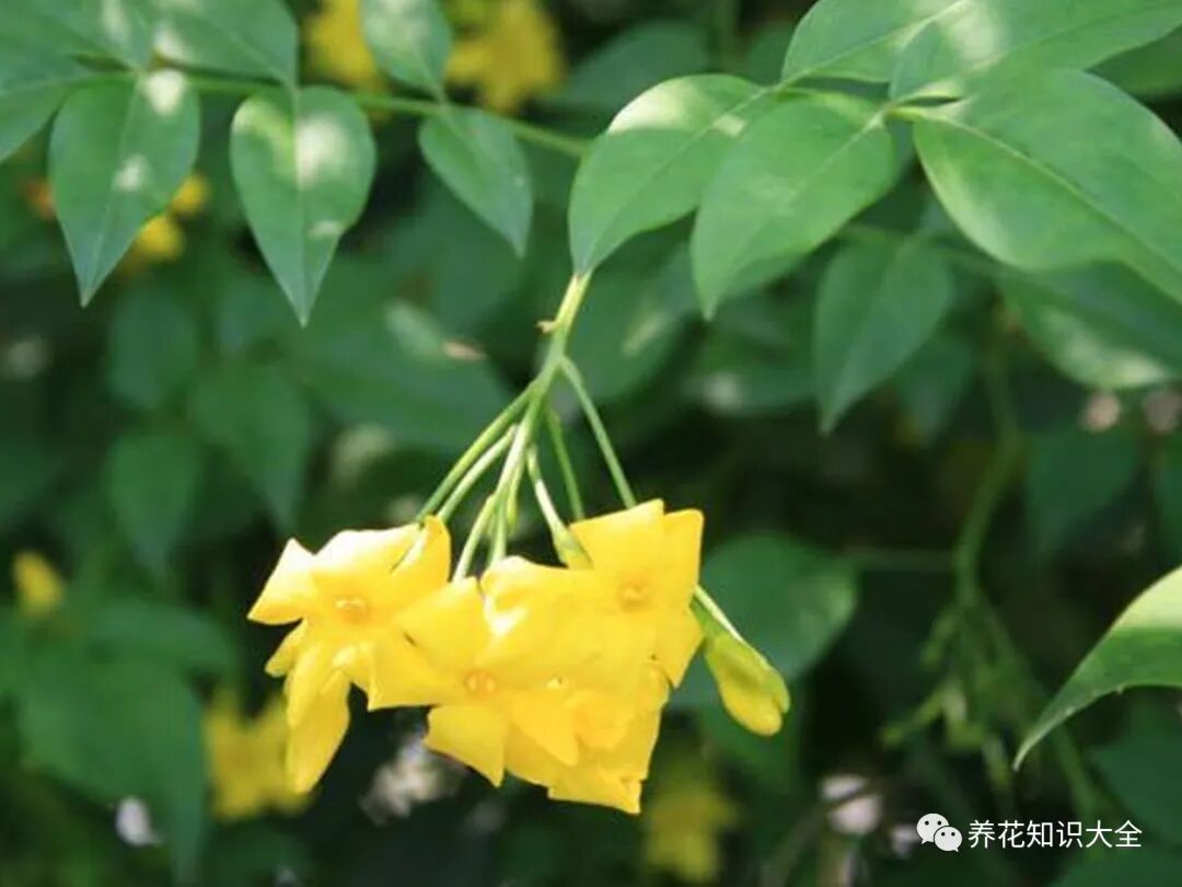 单瓣花,花色亮色,聚伞花序(3~7朵),极香,花期夏季;羽状复叶,互生;枝条细呈藤本状。