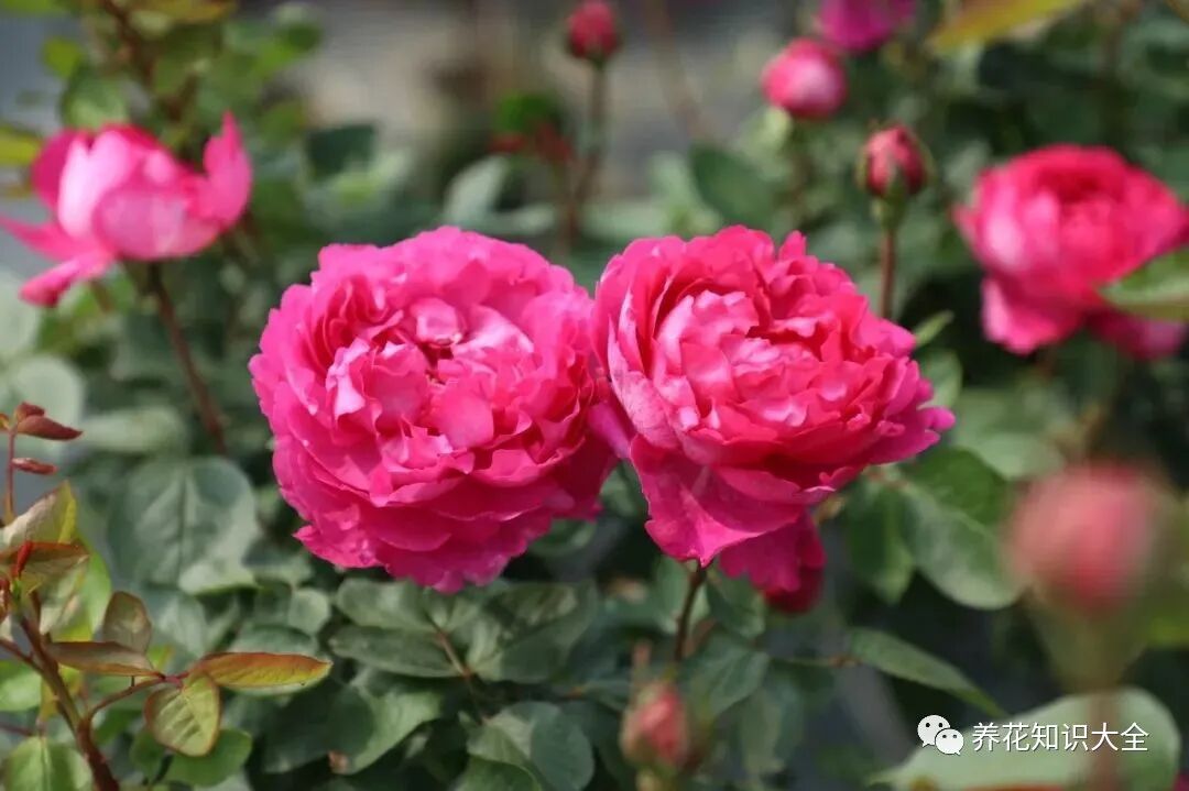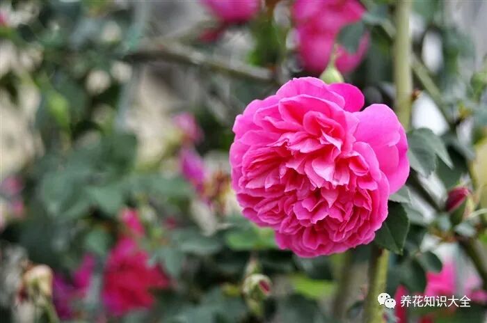 特点:多季节重复开花,花量大,花朵为深粉色,花心部分较暗,气味芳香浓郁,成簇开放,耐寒也耐旱,抗病性好。