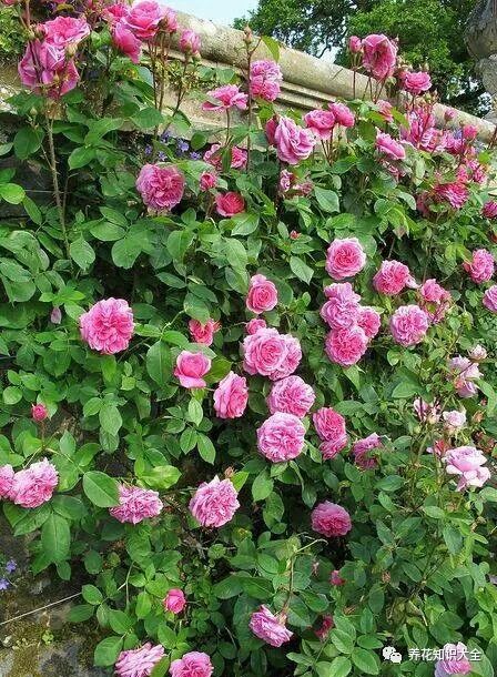 特点:多季持续开花,花大,中等粉红色花色,有一种古老的玫瑰香味,可藤可灌,很耐寒。