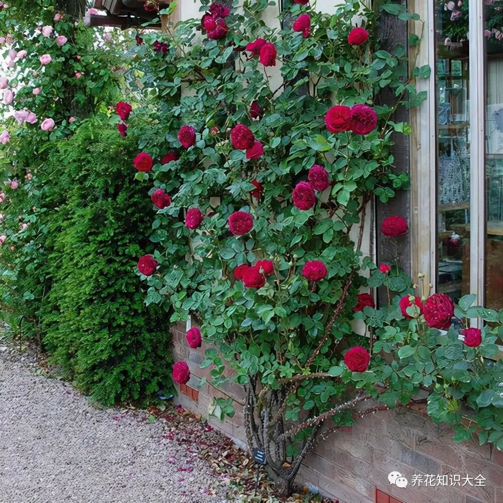 特点:多季持续开花,花大,花色鲜艳(红色),花头众多、花期长、耐开,而且攀援性也特别好。
