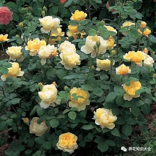 特点:多季重复开花,黄色花色,花背略白,中度的花香,高度可达3米。