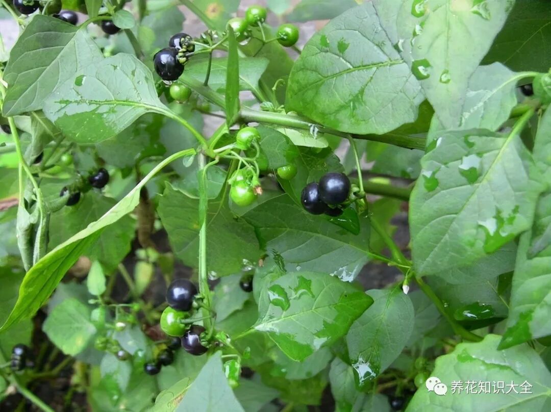 龙葵大部分都生长在田园或者村庄附近,它的果子和叶子都可以吃,成熟的小果子是紫的发黑的颜色,夏天还会开出白色的小花。