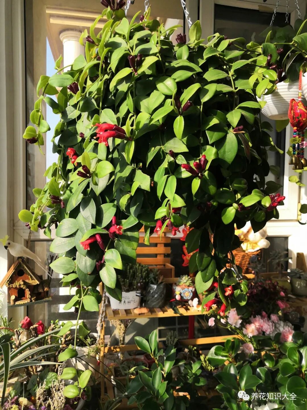 口红吊兰也是最近几年非常火的一种吊兰植物。因为它开的花颜色是大红色,看起来非常喜庆,在翠绿的叶子中间看起来非常鲜艳,就像美人的口红一样,要想让它的花更加鲜艳漂亮,最好是放在光照比较充足的地方,但是不能强光暴晒,等到夏天的时候要给它遮遮阳。
